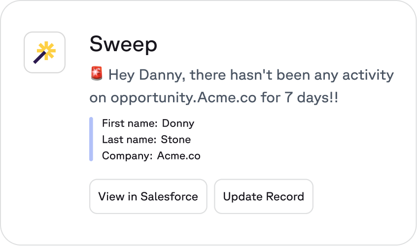 I couldn't be happier with all of the capabilities Sweep provides, how innovative the product integration with Salesforce is, and their roadmap for the future is aligned with our tech stack plans.